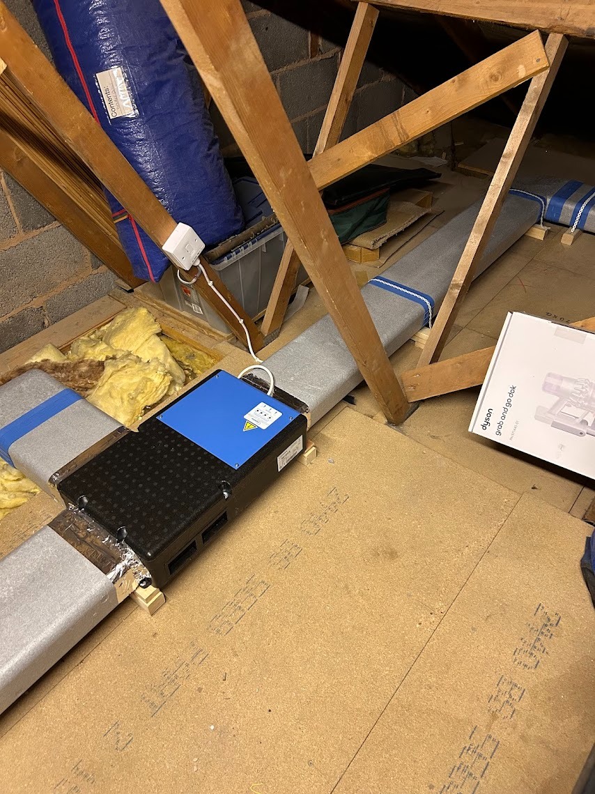 I installed an MEV unit with humidistat. This is a whole house ventilation system, designed to work over long ducting runs – just what was needed here. All ducting was correctly insulated and routed, and the system correctly balanced solving the customer’s issue.